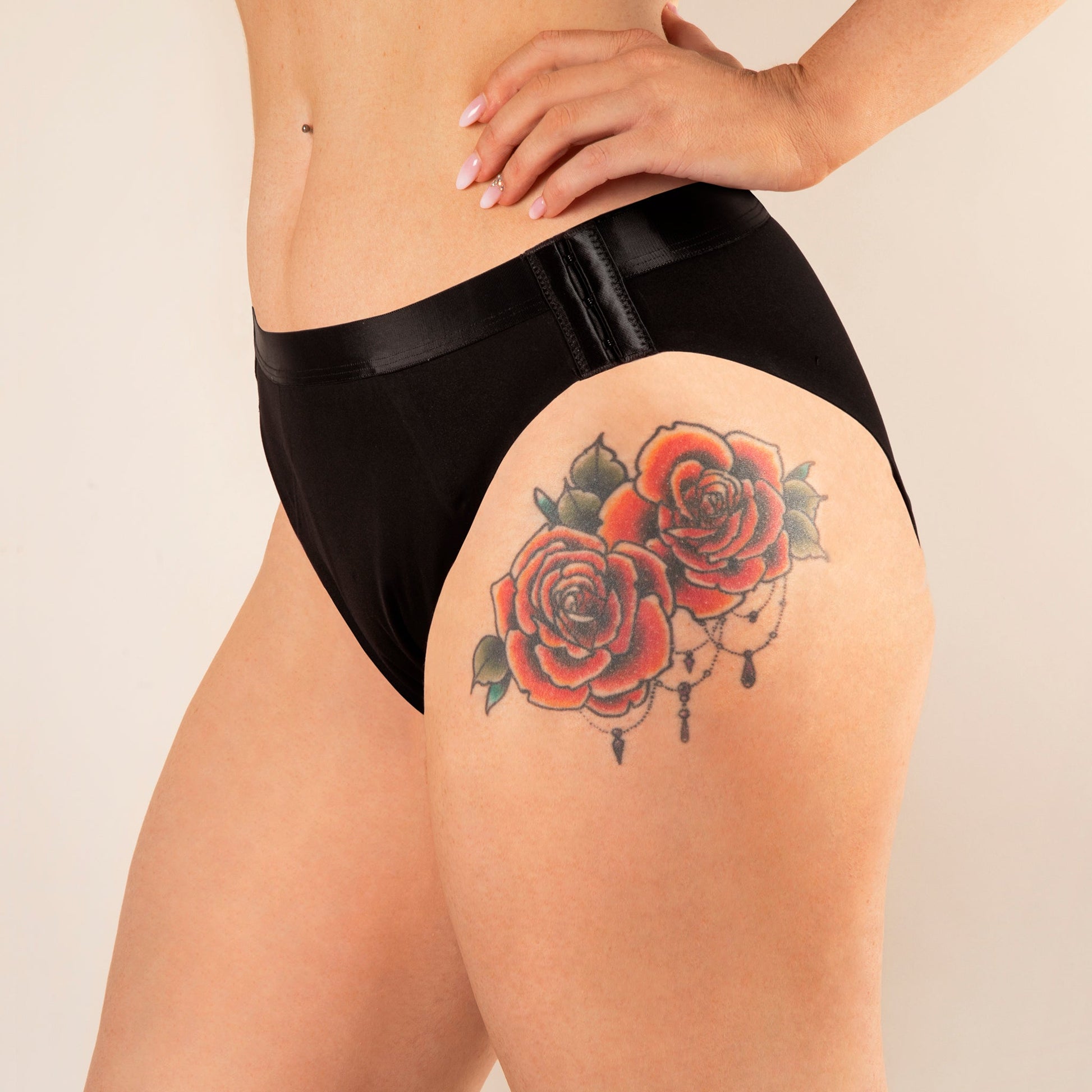 Changez votre culotte en 10 secondes chrono ! Plus besoin de retirer complètement votre jean : avec les agrafes rembourrées et soyeuses, positionnées à l’avant entre la laine et la hanche, le changement est rapide et pratique. Ces attaches sont conçues pour être invisibles et ne procurent aucune sensation désagréable, même lorsque vous dormez sur le côté ou portez un jean serré.