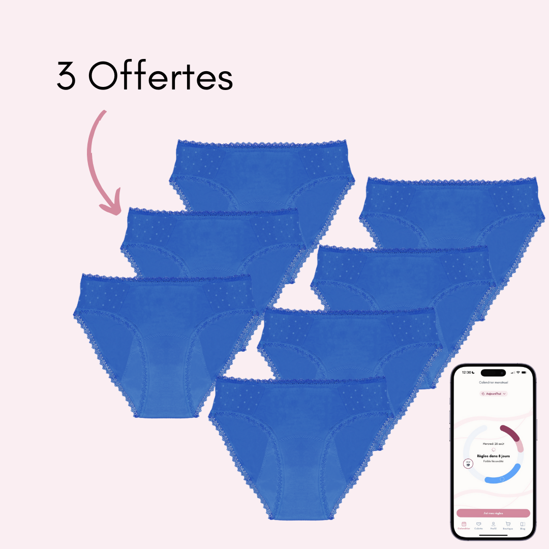 Nos culottes menstruelles sont des sous-vêtements absorbants, confortables et réutilisables, conçus pour remplacer ou compléter vos protections classiques pendant vos règles.
