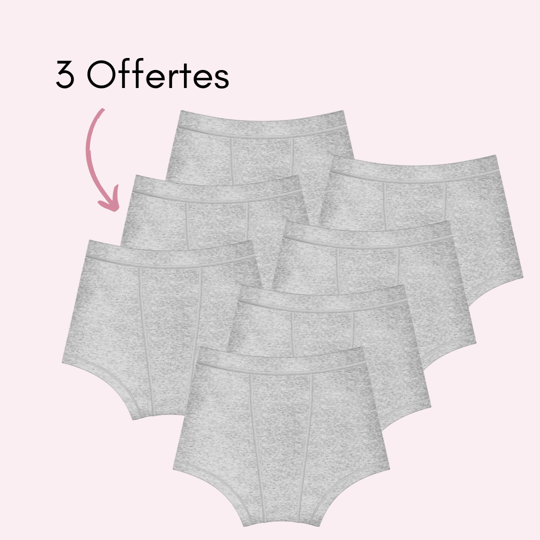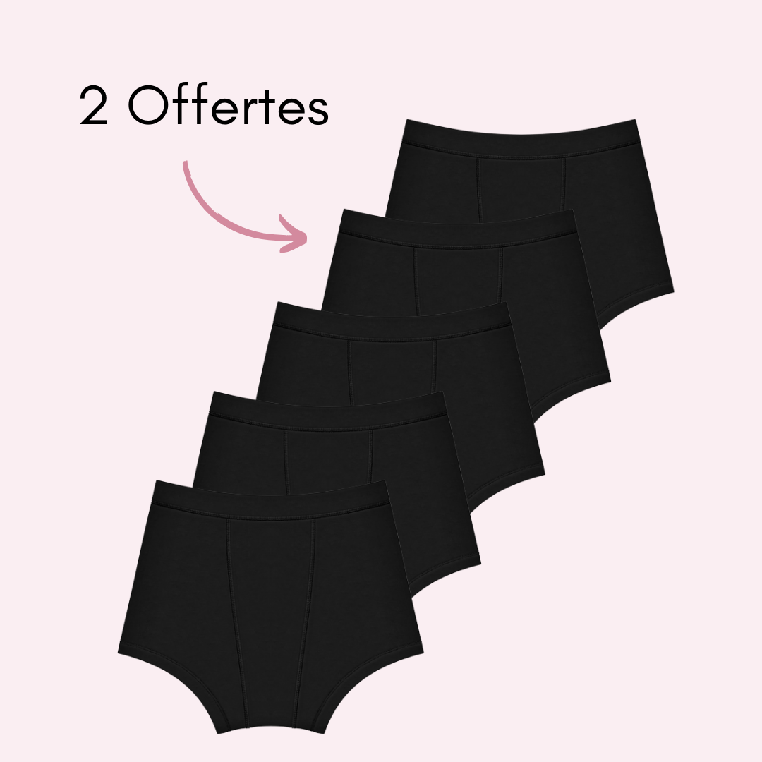 Votre boxer menstruel Pauline vous permet d'être au sec jusqu'à 12H, grâce à ses 4 couches absorbantes qui peuvent contenir l'équivalent de 4 tampons. Vous n'aurez plus besoin d'acheter chaque mois des protections hygiéniques car vos boxers menstruels sont réutilisables. Vos boxers sont également adaptées pour les fuites urinaires.