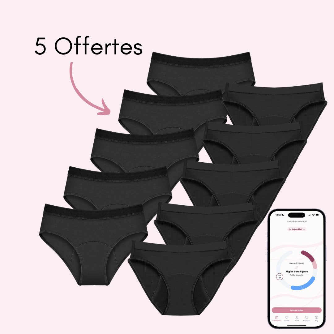 Nos culottes menstruelles sont des sous-vêtements absorbants, confortables et réutilisables, conçus pour remplacer ou compléter vos protections classiques pendant vos règles.